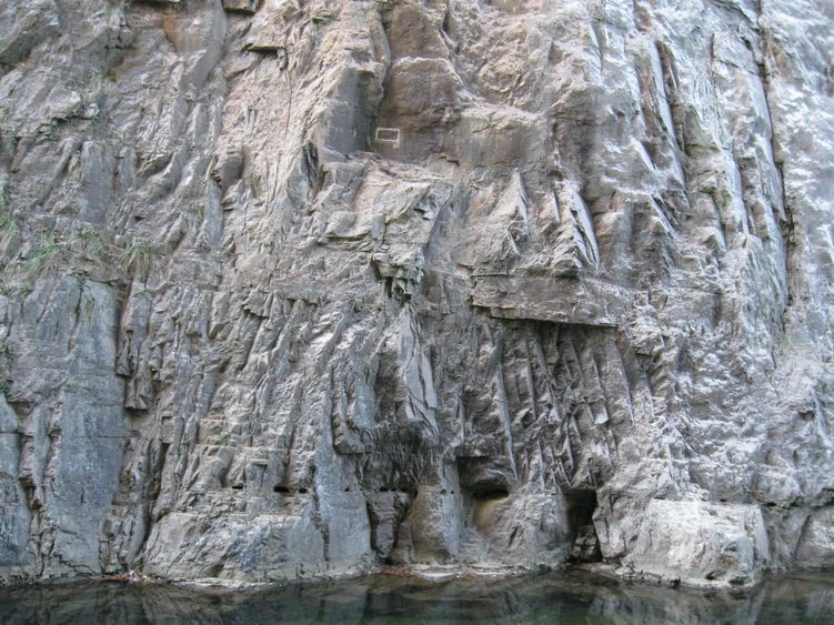Вдоль реки вздымаются гигантские утёсы (надеюсь это объясняет что в долине темно и поэтому снимки такие ужасные) ... |