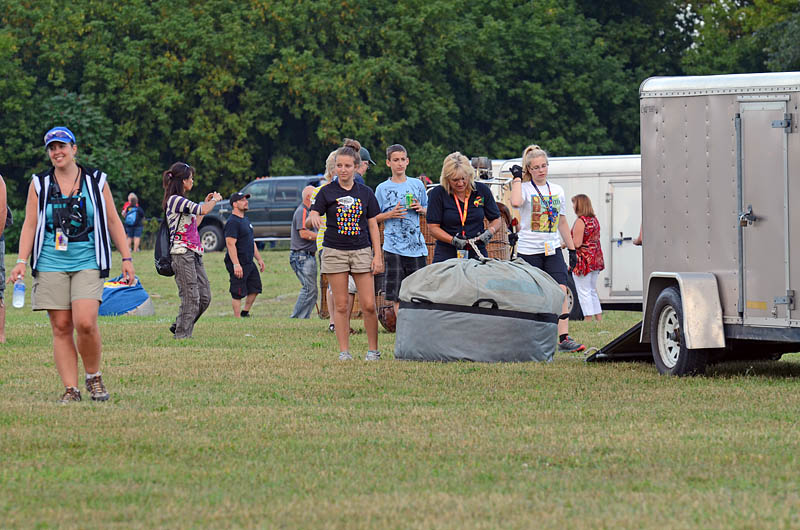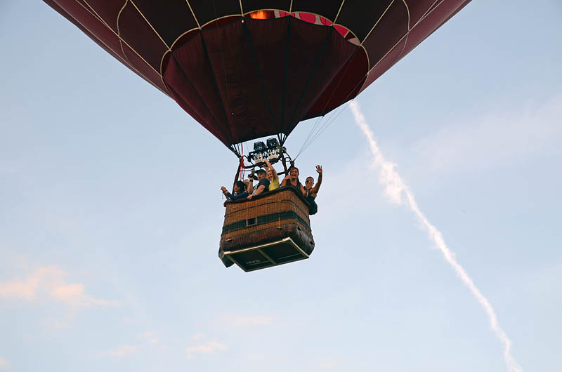 Это как раз момент старта шаров. Оболочки раскладывают по всему полю и почти одновременно начинают надувать. Когда шар уже висит в воздухе набегает толпа друзей и соратников хватаютса за корзину и виснут на ней всеми телами. Горелка продолжает работать и когда, наверное, подъемная сила достигает нужной ядрености друзья и соратники отцепляются и шар довольно быстро поднивается вверх. И то, ему ведь надо миновать все провода, церкви и небоскребы. ... |