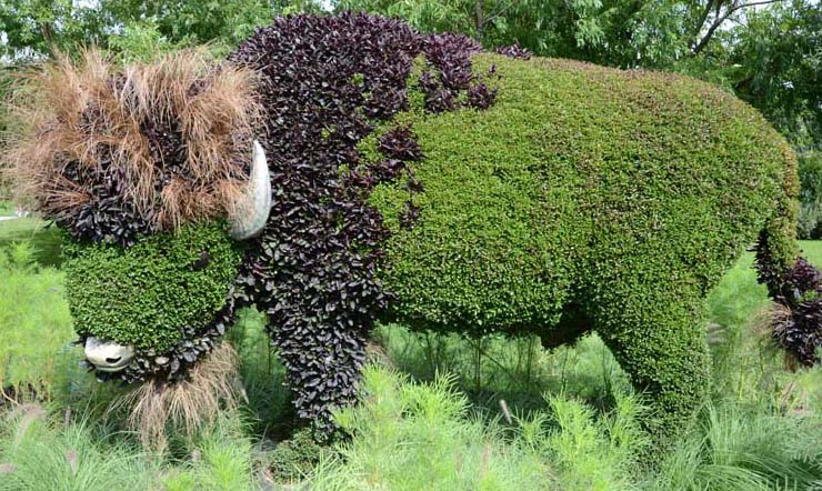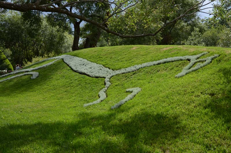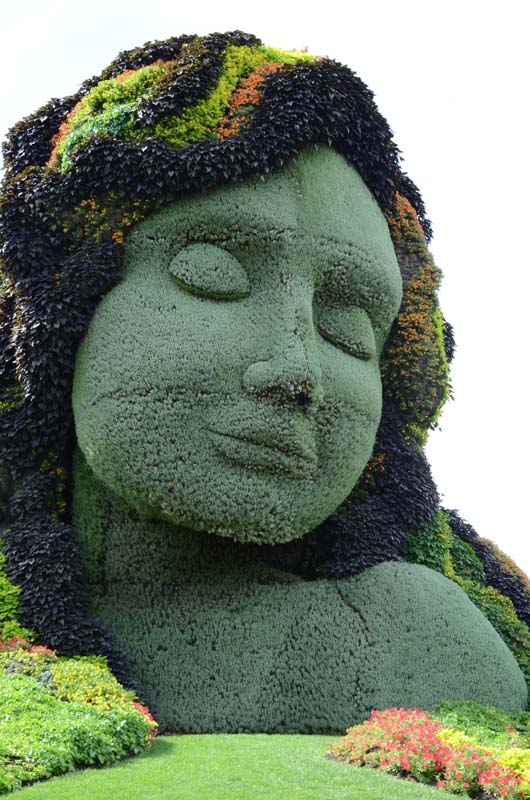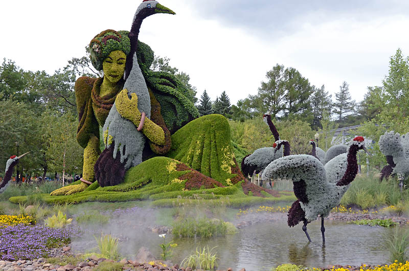Я уже как то говорим что Ботанический сад Монреаля - замечательное место, которое стоит посетить. Но кроме всего, в 2013 году там проводилась международная выставка конкурс Mosaïcultures Internationales de Montréal (MIM). В Монреале она проводилась в 3 раз. Когда мы были в Ботсаду в мае то видели какието странные заготовки из проволоки, уголка и прочих железяк. Многие полянки были отгорожены и там шла какая то работа. Это нас заинтриговало и мы вернулись сюда еще раз в августе. То что мы увидели мне очень понравилось, неожиданно для меня самого. Казалось бы, подумаешь, разноцветные клумбы, ан нет, может правильно спланировано размещение внутри парка, может правильная последовательность объектов а может погода. Вобщем вот мой фото отчет. Самое начало. Наверно это лемуры ... |