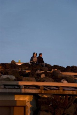 По пути на гору расположены "хатки" (huts). Это небольшие отельчики в которых уставший путни может напиться воды (маленькая бутылочка - 4 бакса), купить пластиковое поныо от дождя и тумана (20 баксов + штаны отдельно тоже 20) и переночевать за 50 баксов. Ночёвка включает в себя комфортабельное место шириной в один спальник, на полке длинной метров 30, среди таких же гайджинов. Что примечательно всех гайджинов(понаехалов) кладут в один угол. Так как настоящии суровые русские мужики идут в гору только в несезон, то все станции были закрыты. Нам пришлось вить себе берлогу самим. Вот он наш бомжатник. ... |