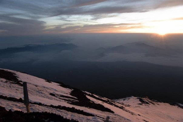 Вокруг кратера шли ещё час, уже под солнцем. Оно топило снег и мы начали в него проваливаться. Этот последний час был самым тяжёлым, хотя и самым пологим. ... |