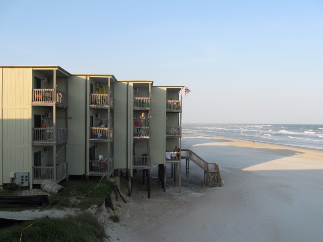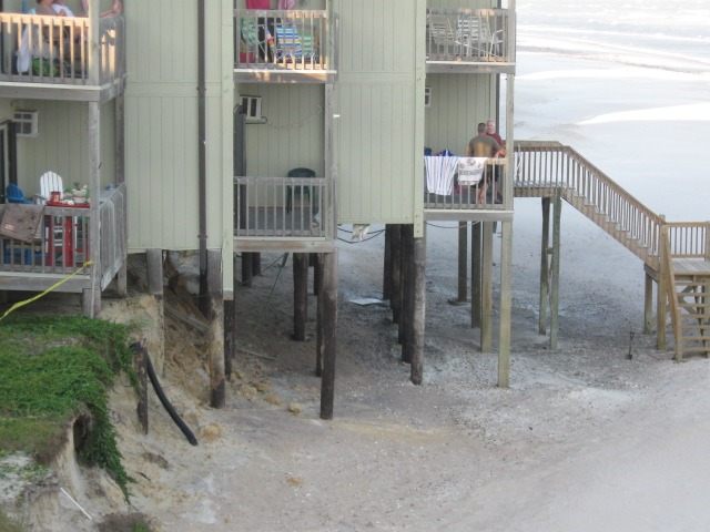 Zhora Мы были в прошлом году в начале агуста недалеко - TopSail Beach, домики поменьше (на 3 семьи) и только со стороы океана можно было выжить, срашно душно было с другой стороны, вода очень теплая и зеленая, но сильно назад затягивает и большие волны - детям опасно ... Вода пока не зелёная, может быть к августу и зацветёт, но пока нормуль. А волны они везде большие, здесь даже получше будет, особенно во время отлива образуется длинная отмель метров 50-80 от берега, там мне по щиколотку, так-что дети в восторге. Видел четырёхлеток в спасательных костюмах, купаются сами, родители только наблюдают. Вот ещё фотка про эрозию берега: ... |