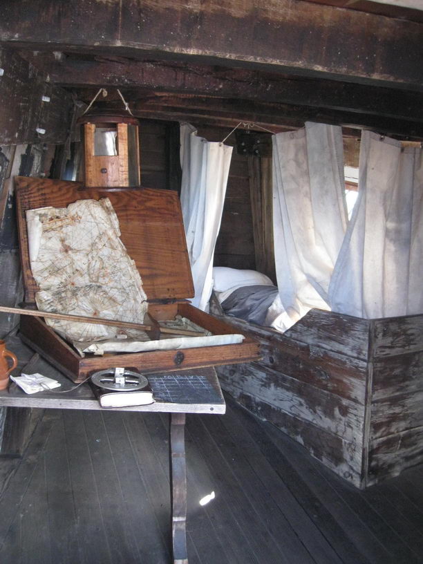 На баке (я правильно хвост обозвал?) каюта капитана - маленькая комнатушка. Все остальные матросы спали прямо на палубе, только пассажиры были в трюме. ... |