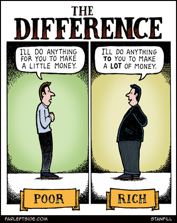 SandalTree LenaV пропущено... мысль хорошая, только к бедным и богатым она не имеет никакого отношения. неужели это "высокая" цель - разбогатеть любой ценой??? to и for значения не имеют money вовсе и не money, а духовное богатство толстый не толстый, а обогащен этим духовным духом а худой - не худой, а вобще какой-то умственно отсталый, а картинка и не картинка вовсе, а целая киношка, только неподвижная. короче, глубоко филосовкий вы человек, СандалТрее. ... |