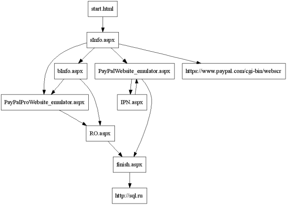 Вспомнил старое баловство. Разбирался с песочницей пейпала, шоб наши фронт-энд разработчики не тратили свое бесценное время. При помощи GraphViz-а нарисовал как передается управление между страницами ВОЗВРАЩЕНИЕ GOTO: Web-ПЕРЕМЕННЫЕ И ПЕРЕХОДЫ МЕЖДУ ASPX СТРАНИЦАМИ тут ... |