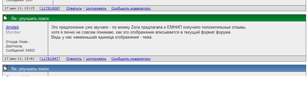 Это предложение уже звучало - по моему Zoria предлагала и ЕМНИП получило положительные отзывы, хотя я лично не совсем понимаю, как это отображение вписывается в текущий формат форума. Ведь у нас наименьшая единица отображения - тема. ... |
