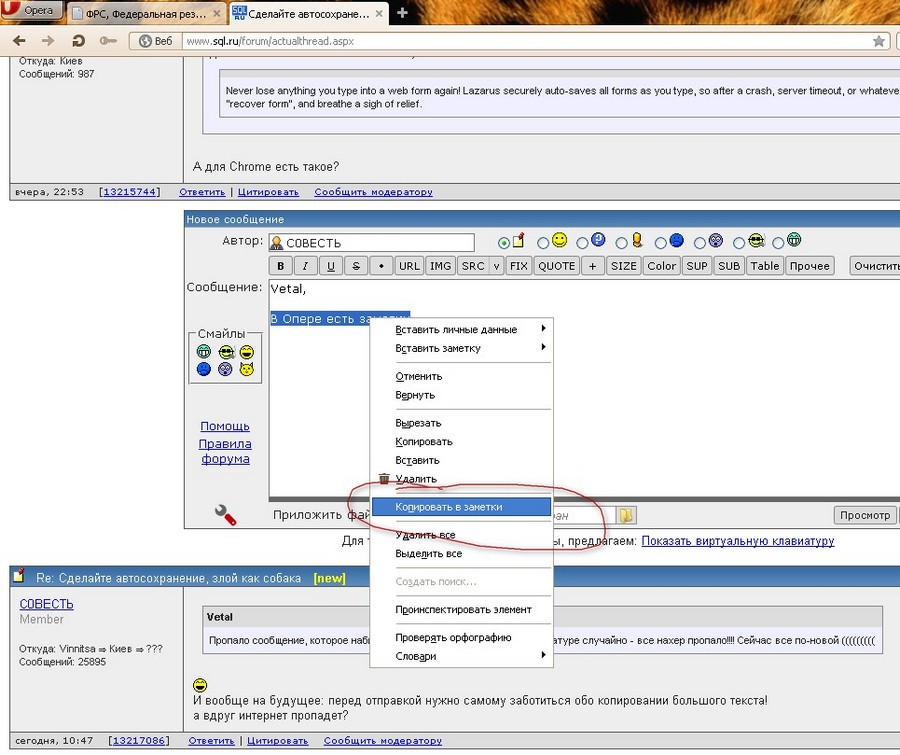 Да, спасибо за советы. Я пользуюсь для этого открытием гугл почты, там есть автосохранение. При этом мы же в 21м веке живем, пора бы уже и сюда эту функцию прикрутить, дабы мы не извращались. ... |