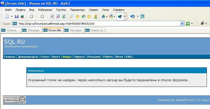 Если сейчас перейти по этой ссылке //https://www.sql.ru/forum/actualthread.aspx?tid=583687#6032183 есть ошибка? ... |
