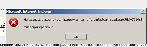 на других сайтах - ничего, а здесь - раз через раз - один топик открываеш нормально, следующий - ошибка - и "невозможно отобразить страницу". жму назад - открывается запрошенная страница (правда - то же невсегда - иногда - снова та же ошибка) и главное и на работе (IE6) и дома (IE7) это я такой невезучий, или какая-то фыча новая брыкается ? ... |