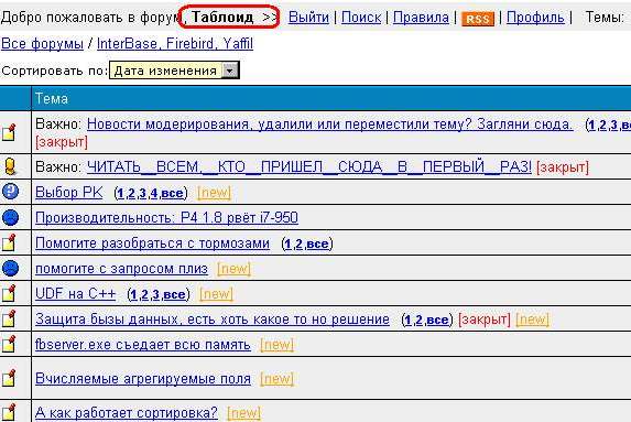 hi all Mozilla/5.0 (Windows; U; Windows NT 5.0; ru; rv:1.9.2.3) Gecko/20100401 Firefox/3.6.3 Началось около 2-3 недель назад. Иду внутрь топика, читаю там всё, выхожу. Через полчаса (а то и меньше) делаю рефреш оглавления тем и вижу, что интересующий меня топик якобы обновился. Но кол-во ответов в нём остается то же и содержимое, ес-сно, прежнее. В большинстве случаев кол-во ответов и/или время последнего из них не запоминаются и в результате прыжок внутрь получается "холостым". Подправьте, плз. Раньше такого точно не было. ... |