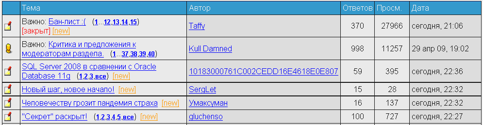 Бояннизд02> мне стоит воспользоваться Нет. Но я бы не возражал если бы какими-то из предложений Вы и воспользовались... ![]() 2 eNose - нет, он сам сделал свой выбор. ... |