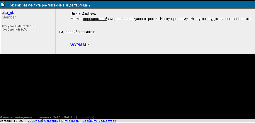 У меня тоже был чёрный прямоугольник на сообщении. После F5 исчез. ... |