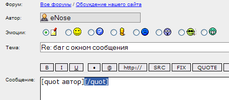 eNose а вот что происходит при нажатии QUOTE (файрфокс 3. при нажатии любых кнопок что-то да выделяется): ... |