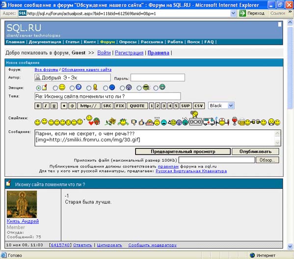 Князь Андрей> Иконку сайта поменяли что ли ? Да. RA\/EN> Верните привычную иконку - новая ужасна! И снова да. Но о вкусах не спорят. Posted via ActualForum NNTP Server 1.4 ... |