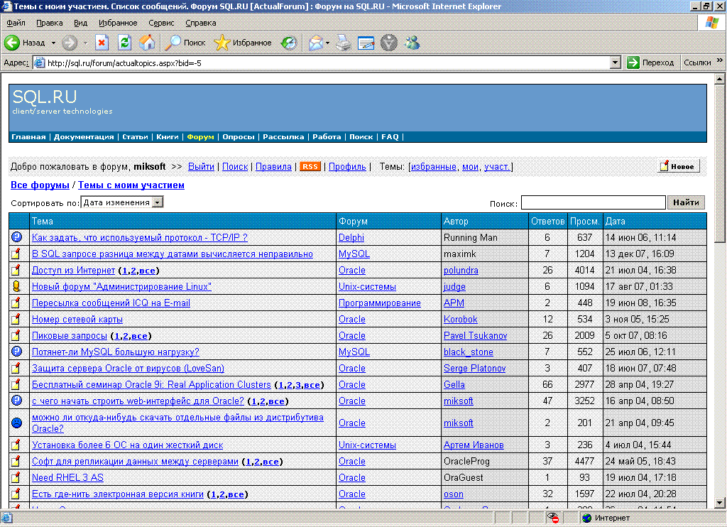 Слетела сортировка тем в Темы с моим участием и в Темы из всех форумов за 3 дня. ... |