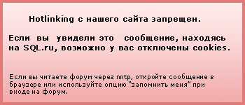 Выдаётся сообщение "hotlinking с нашего сайта запрещён". При этом "hotlinking" на другие сайты, похоже, здесь вполне практикуется. Например, здесь А может, я чего-то не понимаю... В общем, всем удачи в НГ! ... |