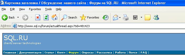Ув. дизайнеры сайта sql.ru, до каких пор на разных страницах, на которые приводят клики по главному меню сайта будут отображаться 2 разные картинки с надписью SQL.RU в стиле Italic и не Italic? ... |