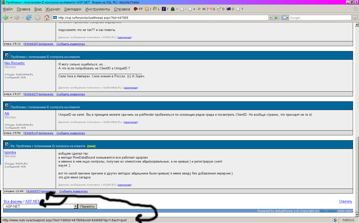 Max Pro URL перехода в гиперссылках заменили в некоторых местах. Стрелками обозначено где. Эти ссылки должны вести на ресурсы sql.ru, а они ведут на rsdn.ru Posted via ActualForum NNTP Server 1.4 ... |