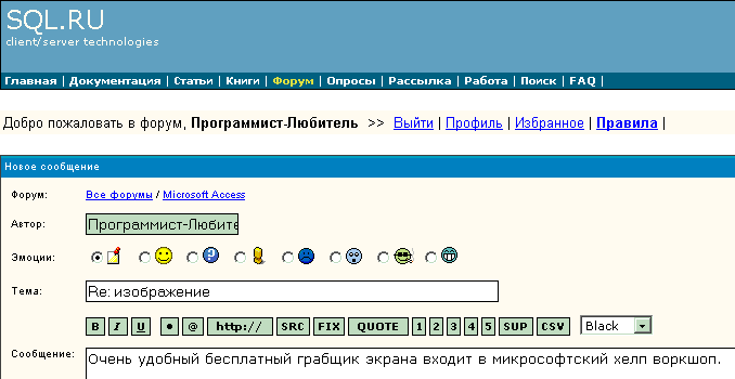 Программист-Любитель Очень удобный бесплатный грабщик экрана входит в микрософтский хелп воркшоп. ... |