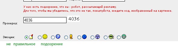 judge Предположение, основывается на содержимом вашего сообщения. Я его давно перечитал : вдоль и поперек. Как то просто у них все.... у меня вот не все так...недаетьси( judge В случае доп. проверке - совсем не сложно ввести 4 цифры. На большинстве сайтов, сообщения от "Гостей" вообще запрещены. ... |