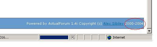 Ура, Год Исправили на 2005! З.Ы. а весь следующий год будем просить, чтобы исправили на 2006. З.З.Ы. а может туда вставить скриптом текущий год? ... |