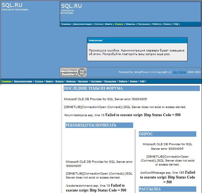 Ребята, что у вас там такое, вот уже второй день подряд идёт ошибка SQL аутонтефикации. Это подрывает авторитет. ... |