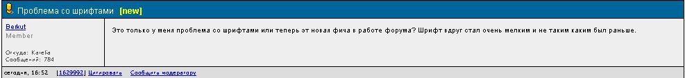 Это только у меня проблема со шрифтами или теперь эт новая фича в работе форума? Шрифт вдруг стал очень мелким и не таким каким был раньше. ... |