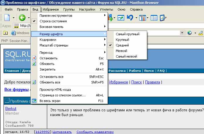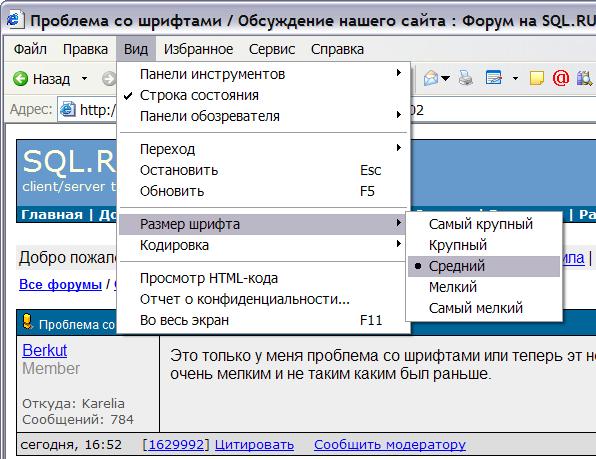 На самом деле уже не первый раз замечаю такую особенность SQL.RU, что фонты периодически "слетают" при тех же настройках браузера. ... |