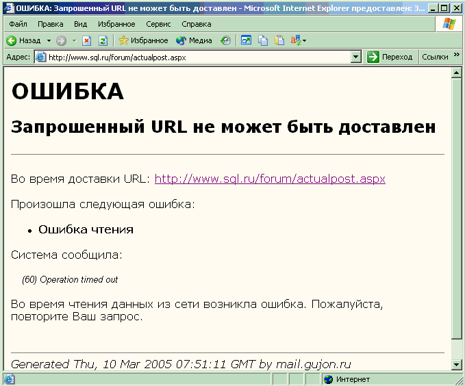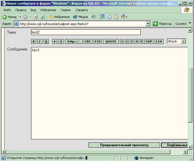 lissyara пишет, что он пытается на сайте sql.ru создать новое сообщение через браузер, идет строка загрузки но сообщение не выводится. Через NNTP сообщения добавляются нормально. ... |
