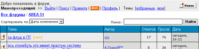 Программизд 02 Мимопроходящий С Федей мы цапались с год тому назад. Но сцылка у меня на bid=2 Так что, список форумов у меня не в кеше. ... |