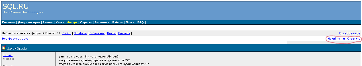 пример приаттачен. там где выделено - должны быть кнопки-картинки. это потому что у тебя урл к ним прописан как: <img SRC="\images\post.gif" BORDER=0 ALT="Новый топик"> ie, формируя абсолютный урл, понимает эту конструкцию, а нетскейп - нет. он ищет картинку по урлу https://www.sql.ru/forum/\images\post.gif. и конечно, не находит. ... |