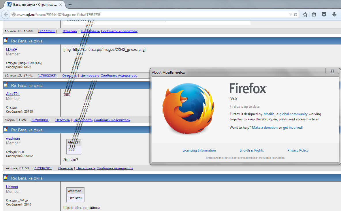 Hello, Ivan Pisarevsky! You wrote on 30 июля 2015 г. 15:05:48: Ivan Pisarevsky > Сейчас не во всех. У меня, например, в 39 ФФ все нормально. Posted via ActualForum NNTP Server 1.5 ... |