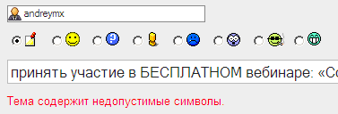 Ненавижу такие сообщения. Иметь информацию о том, какие именно символы в строке недопустимы, и оставлять их поиск пользователю в качестве очередной головоломки ... |