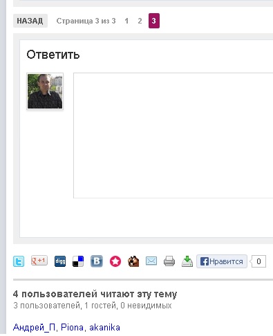 ShSerge medoed Здравствуйте! Было бы неплохо, если внизу страницы при открытии формы - было бы видно кто читает данную тему и общее количество гостей. А на главной странице в списке всех тем, кто сейчас находится на сайте! См пример в картинке: А, вообще, что это даст? У меня на работе и дома никогда не выключаются компьютеры, на одной из вкладок всегда sql.ru. Это что я постоянно на сайте (в двух экземплярах)? Вы хоть бы на одноклассники посмотрели, там друзей видно - когда заходят. Еще вот это бы хотелось типо like -ов: P.S. Когда то читал статью из истории, где обсуждалось чудовищное "неудобство" манипулятора мышь - напомнило ваш отзыв! ... |