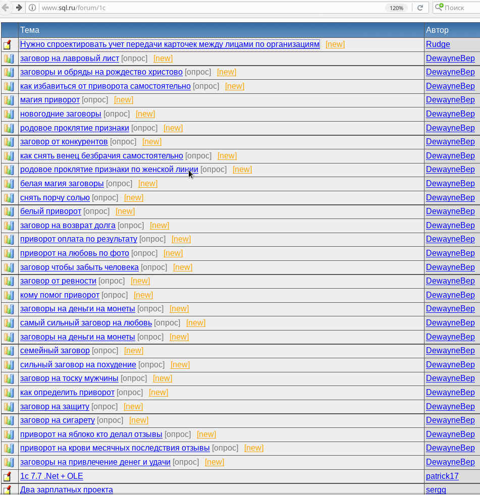 Программист 1с В третьих что Вы скажете если один пользователь который создаст за пару минут 100К тем в каждой ветке форума? ... |