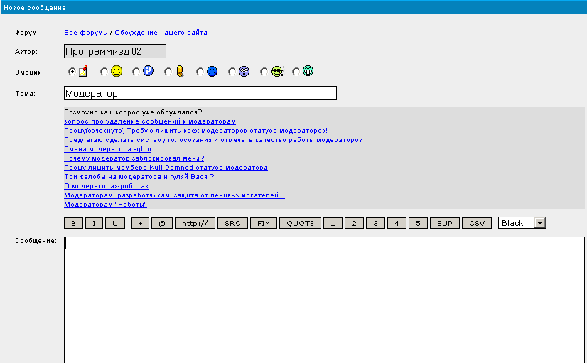 "Возможно ваш вопрос уже обсуждался" 1. Это новое всплывающее поле как-то можно оключить или свернуть? 2. После слова "возможно" поставить бы запятую неплохо. А лучше вообще убрать эту фишку! :))) ... |