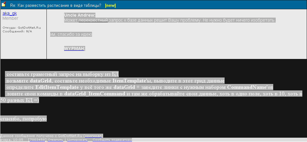 У меня тоже был чёрный прямоугольник на сообщении. После F5 исчез. ... |