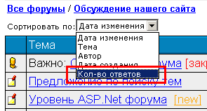 Гаджимурадов Рустам В каждом разделе есть возможность сортировки тем по количеству ответов. ... |