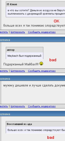 в дефолтном дизайне наблюдается некорректность прорисовки некоторых цитат. Информация о версии Версия: 10.63 Сборка: 3516 Платформа: Win32 Система: Windows XP Идентификация браузера: Opera/9.80 (Windows NT 5.1; U; ru) Presto/2.6.30 Version/10.63 ... |