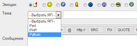 MasterZiv> PHP и Perl мне совершенно не интересны. Python -- наоборот. И по заголовку топика, конечно, непонятно, что внутри. В тех случаях, когда действительно непонятно - надо говорить о несоблюдении правила/рекомендации по использованию тега (указания языка) в заголовке, а не глупо требовать разделения. > Кому интересно всё сразу -- можно "подписаться" на все три раздела. Справедливости ради, такой фичи сегодня нет. Есть немного другая - "избранные форумы", но она второстепенна и не очень популярна. miksoft> А я против простого разделения. Забей, тут даже обсуждать нечего. По крайней мере, в ближайшем будущем, до изменений в движке форума. Posted via ActualForum NNTP Server 1.5 ... |