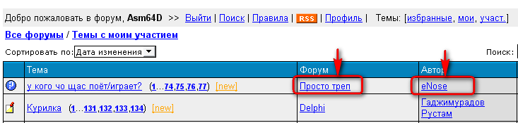 Сортировка в Темы с моим участием по форуму и автору темы