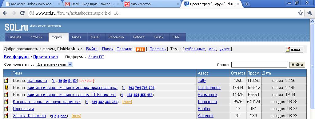 Гаджимурадов Рустам Так все же правильно на скриншотах - два браузера, один результат. Можно даже удостовериться, что new на самом форуме сбрасывается. Открываем Хром, логинимся, жмякаем на нью в топике "про сиьки" Открываем Оперу, логинимся, "про сиськи" отмечено как нью, хотя ничего нового там не появилось. ... |